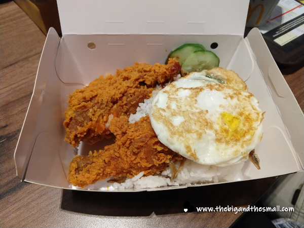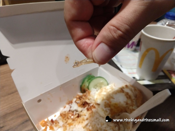 All of that is usually served in banana leaves but we just got a typical McDonald's food box. Often the dish is also served with some sort of meat - chicken, fish, or beef - ours cames with two fried chicken pieces. The spicy sauce was indeed spicy - I like to think I have a decent tolerance for spicy food but one bite of that stuff left my lips tingling for quite a long time and my heartburn threatening to act up. The rice and cucumbers helped to cool that down and when it was all eaten in one bite it was pretty tasty. I even liked the anchovies kinda - to be honest before I knew exactly what they were I thought they were fried onions like you find on green bean casserole, lol.