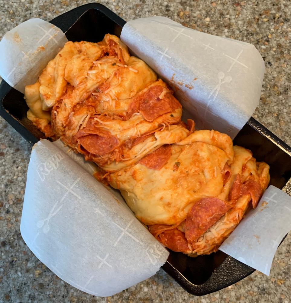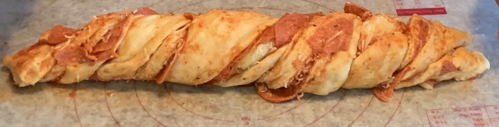 This week’s Thursday Dough Day we made Pizza Babka. Traditionally babka is a sweet braided bread or cake which originated in the Jewish communities of Poland and Ukraine. In the U.S. it is typically called a swirl bread. The savory version was quite good, but my sweet tooth is looking forward to trying a Chocolate Babka.